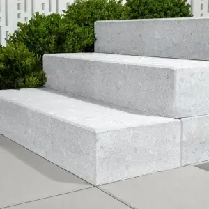 Terrazzo Mineral White sets the project’s refined, European character. The 600×600 slabs form the bright, continuous surfaces around the pool, while the 600×150 slabs introduce pattern and dimension in the lounge through a herringbone layout. Mika in Onyx Black defines the outdoor kitchen and fireplace zones with a grounded architectural presence, chosen for its durability, stain resistance and ability to stay visually consistent in shaded conditions. Together, the combination creates a cohesive palette that supports both the open, sunlit areas and the more intimate moments woven throughout the property.
