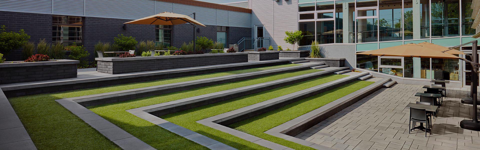 L’équipe a opté pour le couronnement Raffinato en gris calcaire, ainsi que pour le mur Raffinato en noir onyx afin de créer des jardinières et des places assises de style « amphithéâtre ». Ces produits étaient faciles à installer grâce à leur système autobloquant, à leur taille uniforme et à leurs joints qui s’alignaient parfaitement. De plus, leurs couleurs