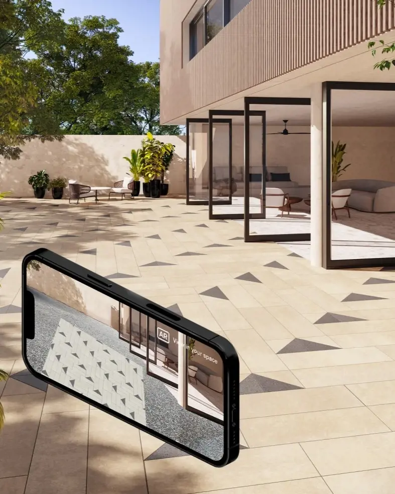 After a long period dominated by cool greys, designers are shifting toward warm neutrals to bring softness to their projects. Beige enhances modern architecture without competing with it, creating spaces that feel grounded and inviting. In this project, Caffè Crema Industria Smooth Slabs show how warm tones can reset an entire atmosphere. Their sunlit undertone softens large hardscape areas and reflects light in a calm, cohesive way. This warmth ties the layout to surrounding greenery and the glow of fire features, supporting a broader movement away from stark minimalism toward spaces that prioritize comfort and visual warmth.